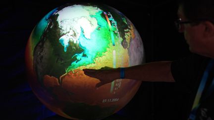 Le Gulf Stream présenté sur un globe,en 2024. (MARCUS BRANDT / DPA )